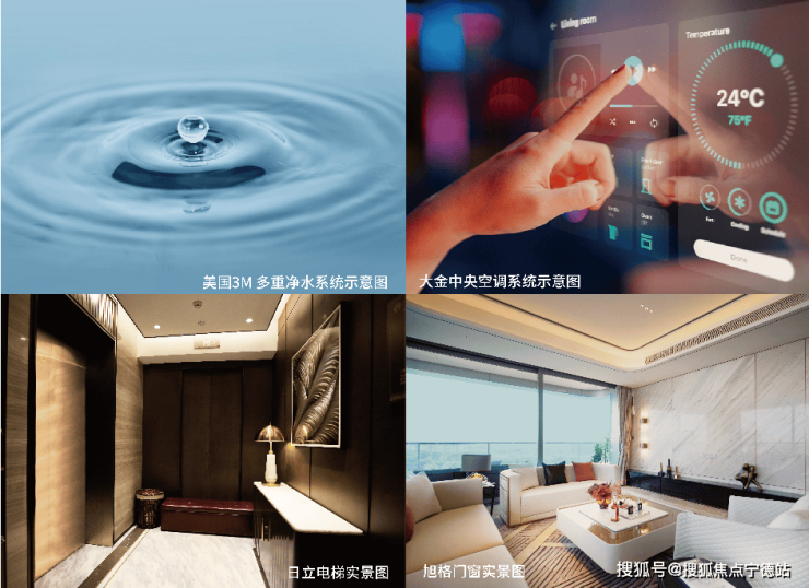 当智能科技结合现代居所,理想人居得以升华。采用国际一线品牌交付标准,引入美国3M多重净水系统、日立电梯、德国旭格门窗与大金中央空调系统。