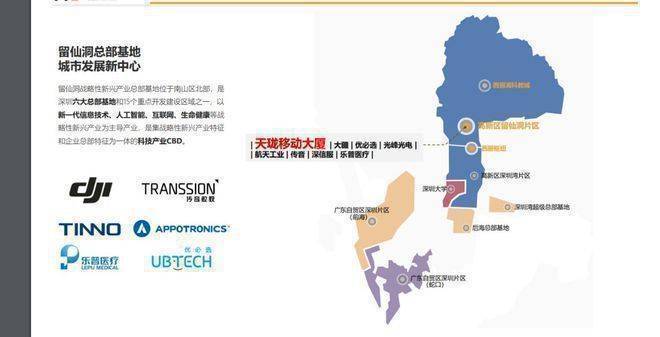 区域进驻大企业有:大疆、优必选、光峰光电、航天工业、传音、深信服、乐普医疗等!