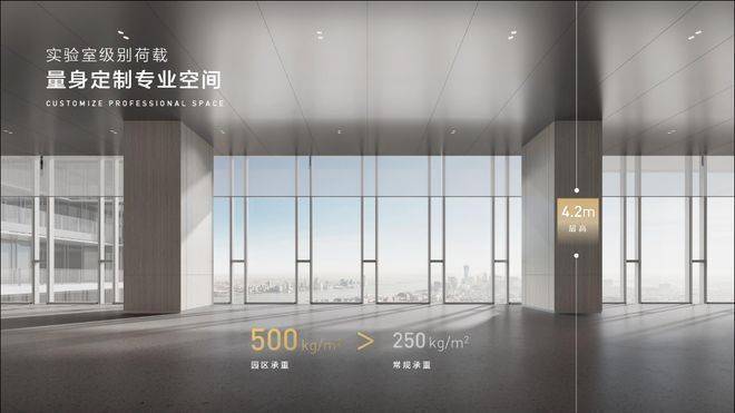 园区承重500 kg/㎡,远大于常规250kg/㎡常规承重