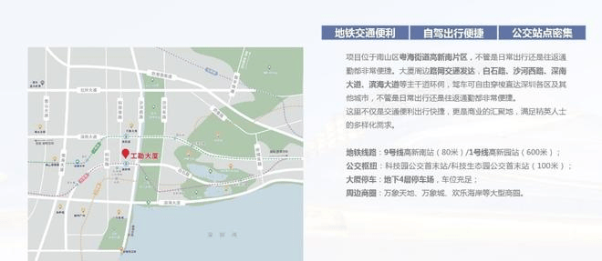 地铁线路:9号线高新南站(180米)/1号线高新园站(600米);