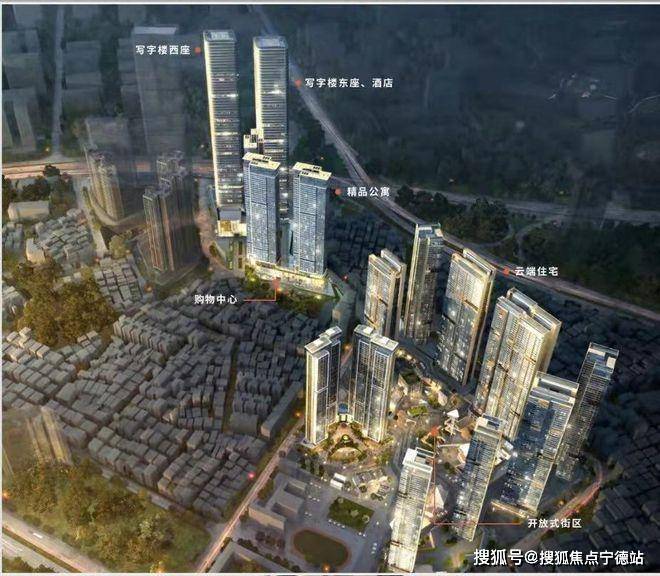 集购物中心、公园式街区、双子塔写字楼
