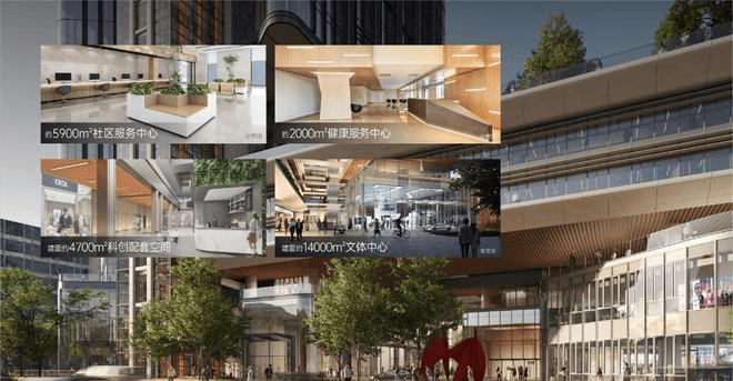 建面约4700m²科创配套空间、建面约5900m²社区服务中心、建面约2000m²健康服务中心于一体,毗邻建面约14000m²文体中心,营造多元都市生活新方式。