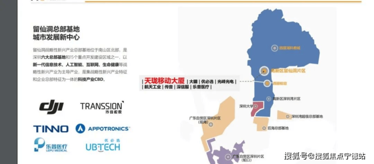 区域进驻大企业有:大疆、优必选、光峰光电、航天工业、传音、深信服、乐普医疗等!