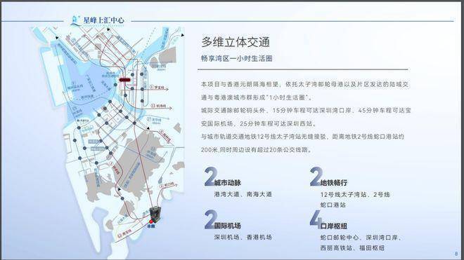 城际交通除邮轮码头外,15分钟车程可达深圳湾口岸、45分钟车程可达宝安国际机场,25分钟车程可达深圳西站。