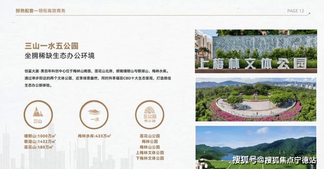 通过举步即达的两个文体公园,近享绿意盎然,同时共享福田CBD十大生态景观,打造绝佳生态办公新体验。