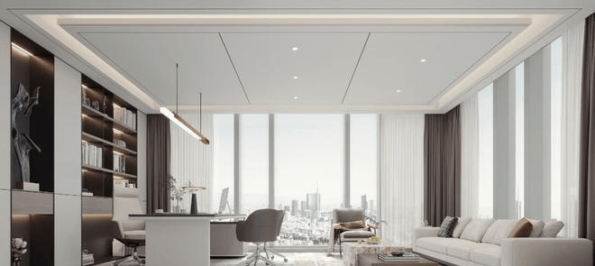 交付标准:天花系统、网络地板、乳胶漆墙面等
