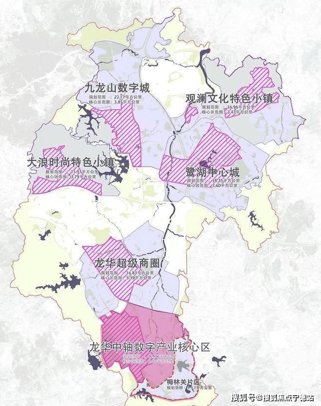 科创产业:北站商务核心区与坂田坂雪岗科技城双区交汇,集聚美团、深圳通、华为、富士康等龙头产业,形成超密集企业矩阵。