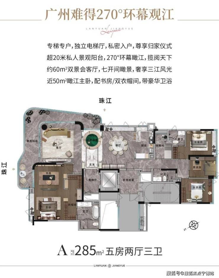 广州市荔湾区【兰园·江悦】面积193~285平米,开发商直售无中介费,白鹅潭低密度江景豪宅,现楼发售,仅7XX万起!!