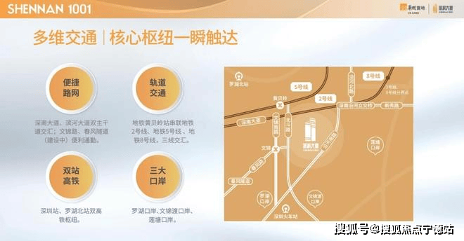 ①深南大道、滨河大道双主干道交汇,文锦路、春风隧道(建设中)便利通勤