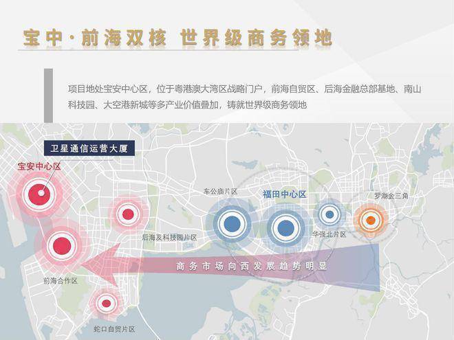 1、宝中·前海双核,世界级商务领地,商务市场向西发展趋势明显: