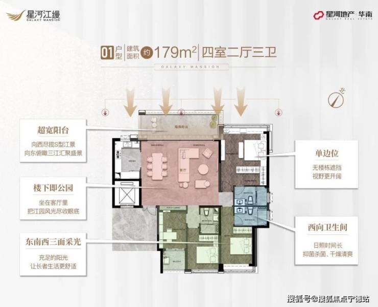 ①、出售面积:179平米4房3卫2厅,总价748万起