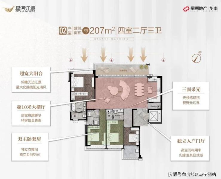 ②、出售面积:207平米4房3卫2厅,总价1088万起