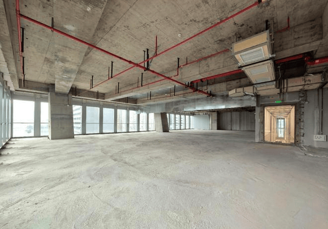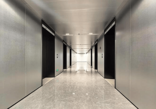 大堂设计:顶部预设展览挂钩、科技感空间设计、层高约10/6m、最大面宽约100m