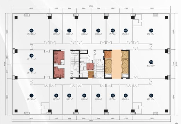 单位面积段:约70-2156㎡(70 ㎡起售,轻松进阶)