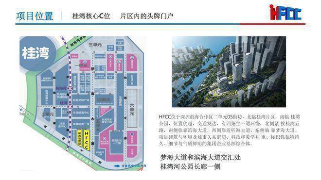 北临桂湾片区,南临桂湾公园,西面为前海控股大厦,北面为卓越前海壹号,位置优越,交通发达,有四条主干道环绕,北侧紧挨桂湾五路,南侧临靠滨海大道,西侧靠近听海大道,东侧临靠梦海大道。