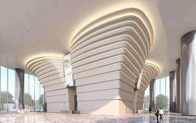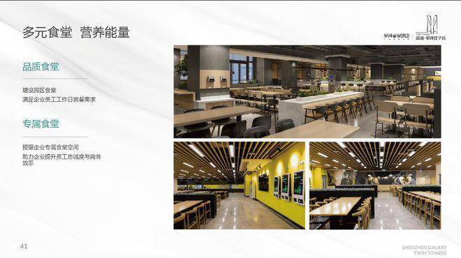 6、硬件配置:集塔尖停机坪、空中总部大堂、多元员工餐厅、高标共享会议中心等于一体,湾区地标;
