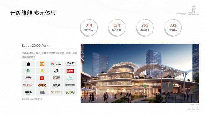 1、星河WORLD160万㎡产融新城,集高品质办公、旗舰商业(COCO Park)、吉酒店(与万豪合作)、精品住宅公寓、文化中心等多元配套于一体;