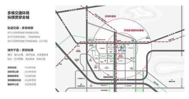 另有南光高速和粤港澳高速相邻,从交通上提升留仙洞总部基地于深圳与粤港澳大湾区的战略地位。