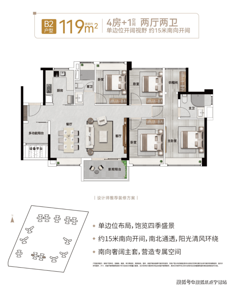 ③、出售面积:119平米4+1房2卫2厅,总价499万起