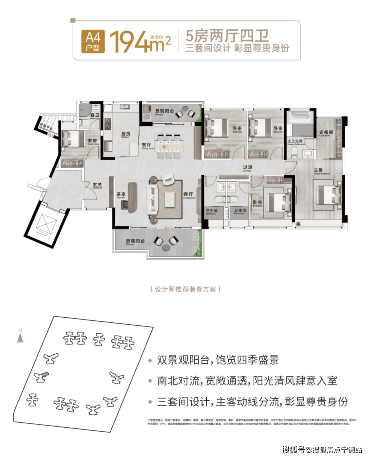 5、出售面积:194平米5房3卫2厅,总价1069万起