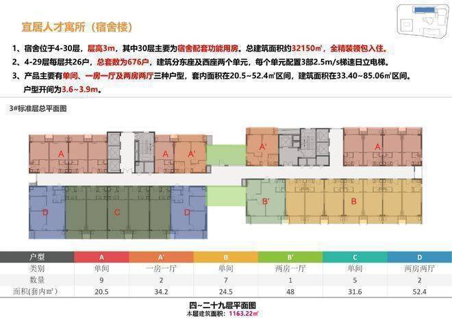 1、宿舍位于4-30层,层高3m,其中30层主要为宿舍配套功能用房。