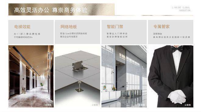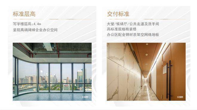 4.4米标准层层高,7-9m进深,办公区配备全钢材质网络地板,方便实用;