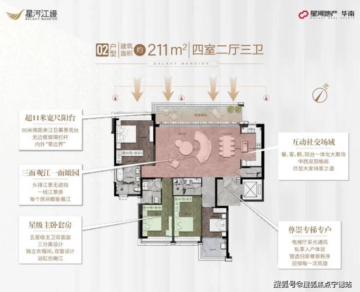 ③、出售面积:211平米4房3卫2厅,总价888万起