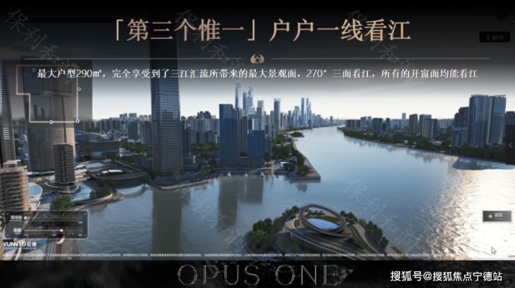 为ZUI大化利用与港湾38米宽的可用地范围,住宅整体抬高约14米,进一步与港湾融合,享受三江汇流所带来的最大景观面,纯一线江景配置,套套皆楼尊。