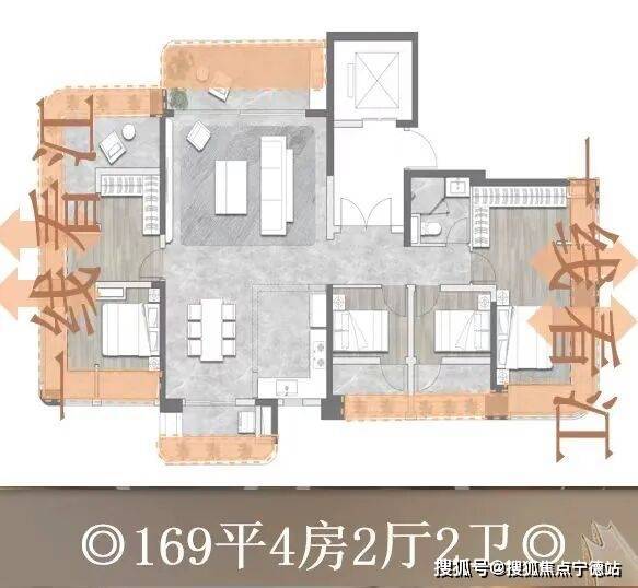②、出售面积:177平米4房2卫2厅,总价969万起