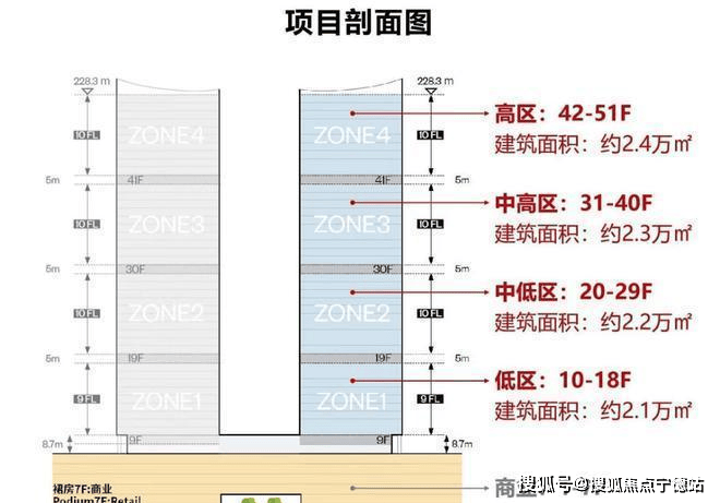 客梯数量:高区6部,中高区5部,中低区4部,低区3部
