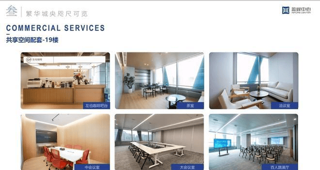 19楼共享空间配套,百人路演厅、大小会议室、茶室、洽谈室、咖啡吧等应有尽有。