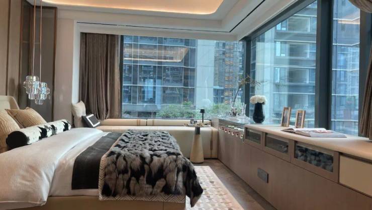 「奢华主卧」约30㎡行政主套,配豪华衣帽间,270°转角飘窗,瞰景无界。