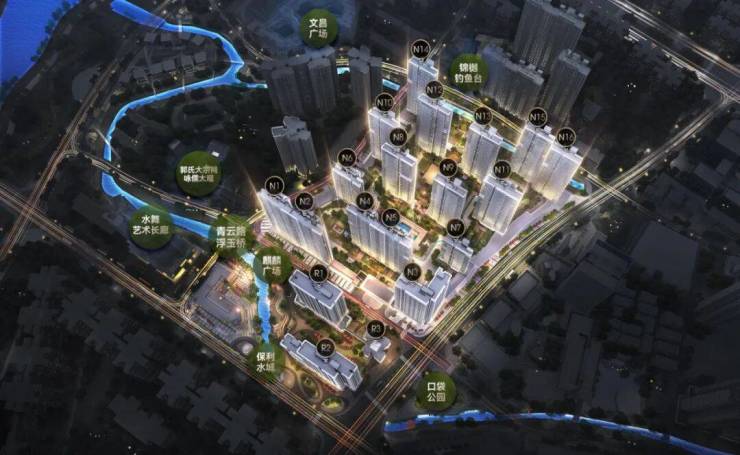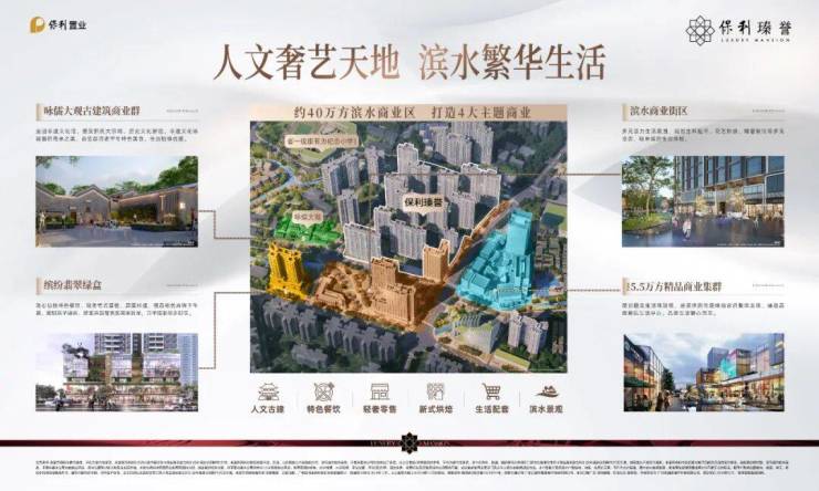 保利作为花地湾片区连片开发最重要的城市运营商,打造约120万方超配大城,涵盖了高端住宅、酒店、滨水商业街区、公寓、文化等多为复合业态,实现真正意义上的超配大城。