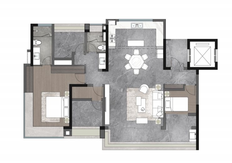「星级双套」豪华双套卧,主卧270度飘窗配尊崇衣帽间及酒店式双台盆;