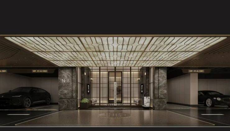 车库入口配置星空穹顶,搭配奢华型迎宾背景墙,内部打造铝格栅吊顶、透光云石穹顶、仿石漆天花、高品质金刚砂+地坪漆双重工艺等豪奢配置。穿越奢华的归家路,际遇层峯的尊崇归家礼序。
