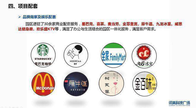 园区进驻了30余家商业配套服务,星巴克、喜茶、麦当劳、金翠皇宫、原牛道、九龙冰室、威思达健身房、欢乐盛KTV等,满足了办公与生活结合的园区一体化服务,满足客户需求。