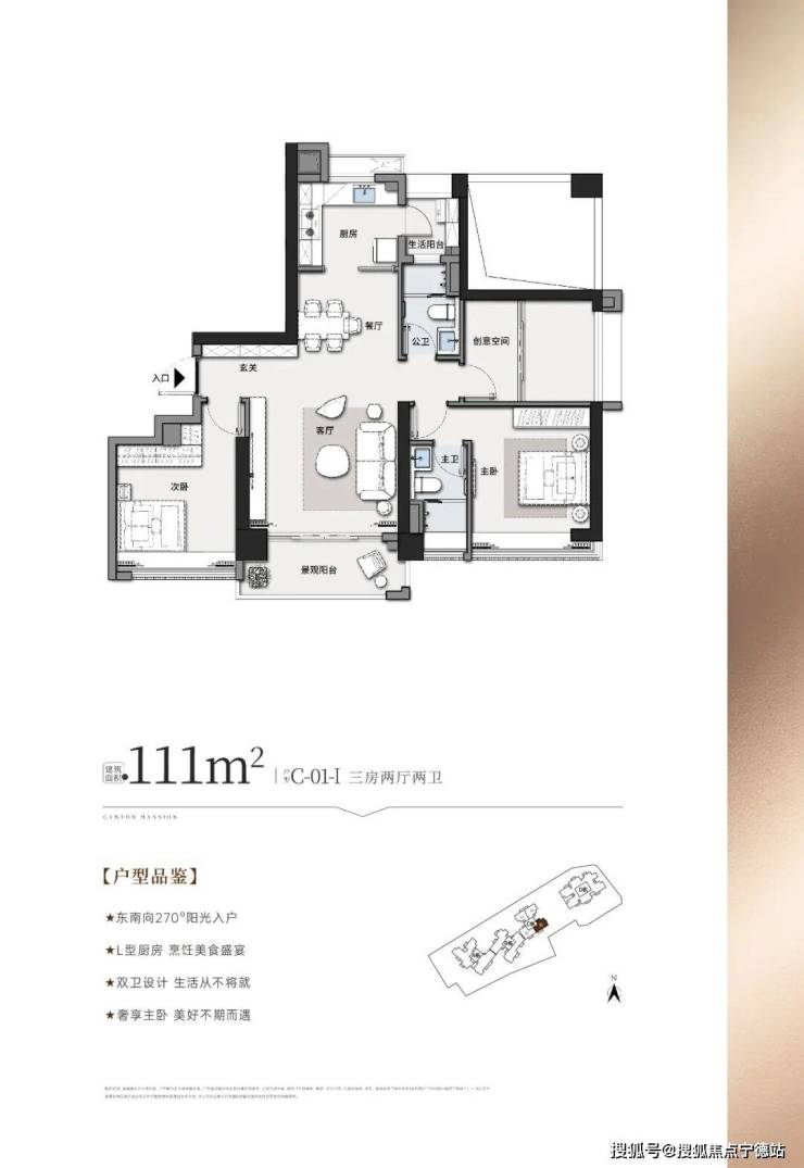 ③、出售面积:111平米3房2卫2厅,总价529万起