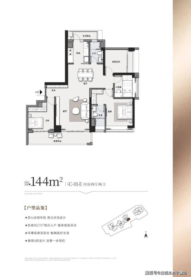 ④、出售面积:144平米4房2卫2厅,总价739万起