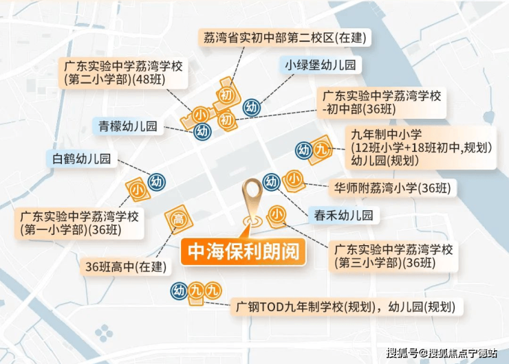 一路之隔就是广东实验中学荔湾学校第三小学部(简称“省实三小”,已于2022年9月开学),周边有省实一小,省实二小,华师附小,广东实验中学荔湾学校,24年7月中考学霸集中,广州第一梯队;项目自身配建2所中学(一所36班初中/一所36班高中在建中),其中一间已确定为省级名校:广东省实验初中,预计2025年竣工;板块将规划32所学校集群,小学到高中一站式全龄段教育,打造15分钟教育圈。
