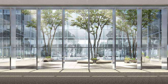 特色中庭空间:平面内设置绿色通高中庭,提升总部办公舒适度。