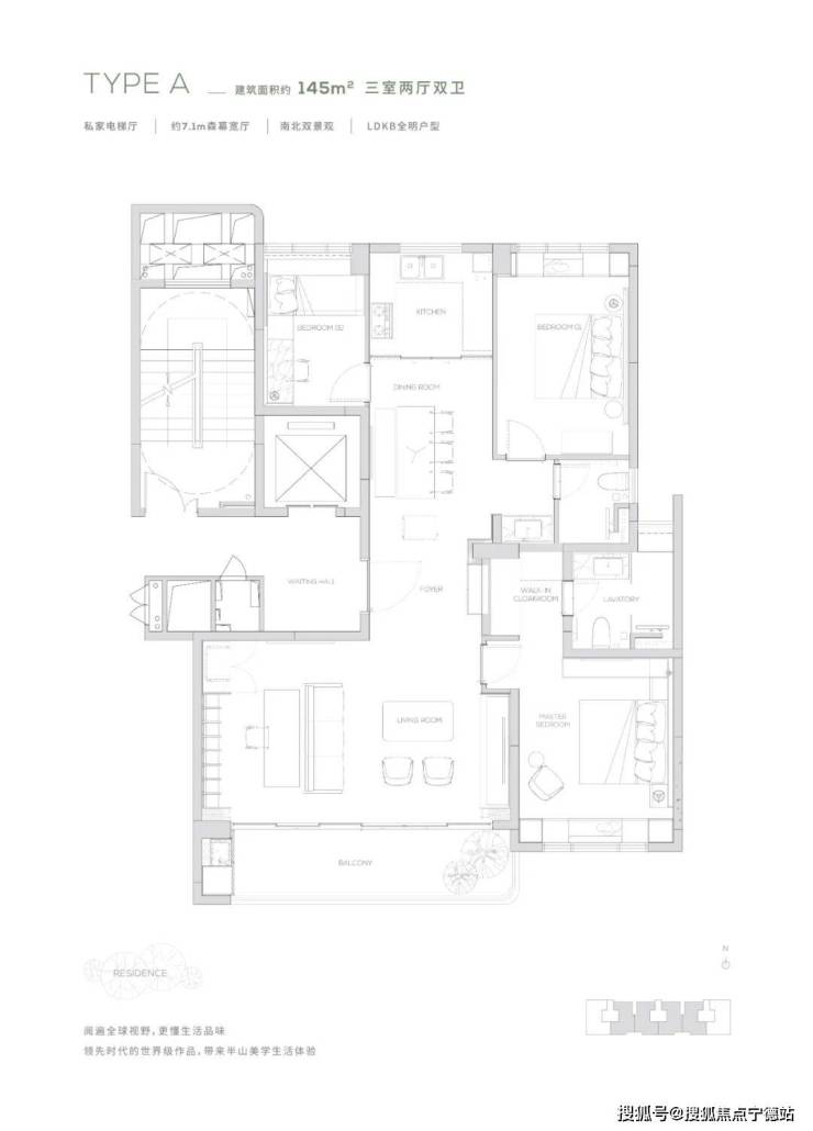 【145㎡户型】独享私家电梯厅-约7.2m²森幕宽厅-LDKB全明户型
