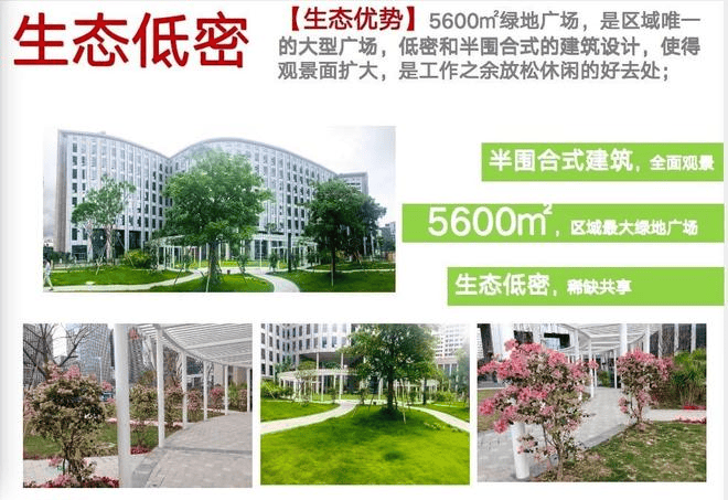 5600㎡绿地广场,是区域唯一的大型广场,低密和半围合式的建筑设计,使得观景面扩大,是工作之余放松休闲的好去处。