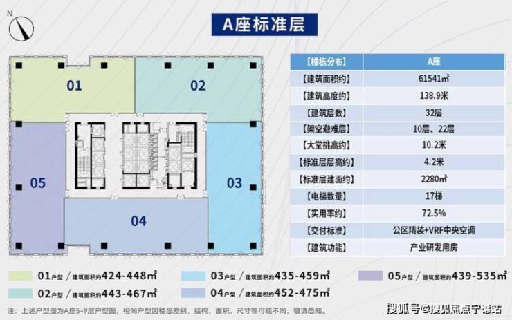 楼层面积段:425-2300㎡