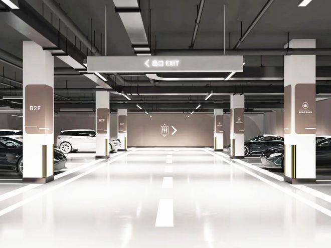 豪华停车场,共有538个地下停车位,分区域分业态停车,停车不再难。