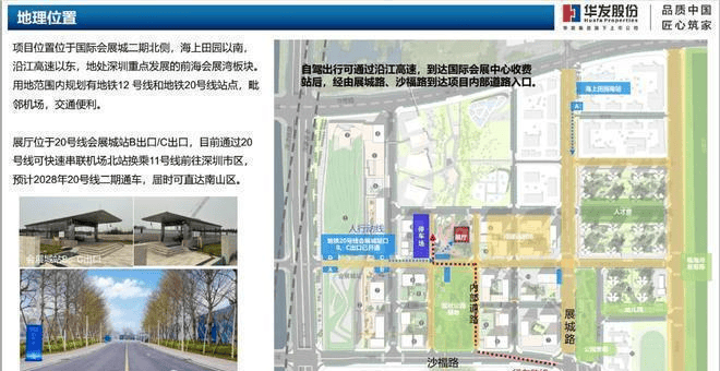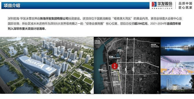 项目由珠海华发集团有限公司投资建设,位于国家战略级“粤港澳大湾区”的黄金内湾,紧邻全球最大会展中心及国际空港;所处区域未来还将作为深圳5大世界级商圈之一的“空港会展商圈”核心位置,项目总投资超296亿元,2021-2024年连续四年被列入深圳市重大项目计划清单。