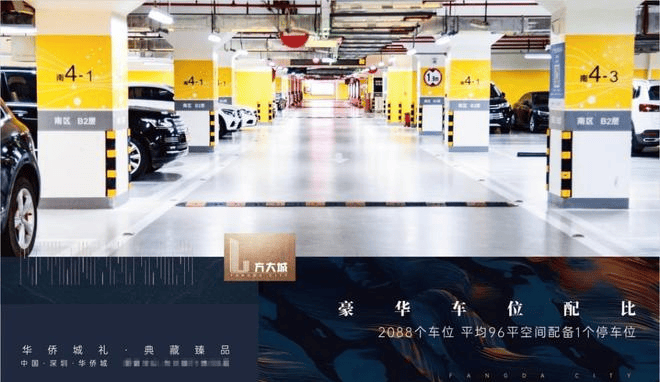 96㎡:1 阔绰停车 地下共四层停车空间,2088个车位,平均每96㎡办公面积配1个停车位,超阔绰车位配比。