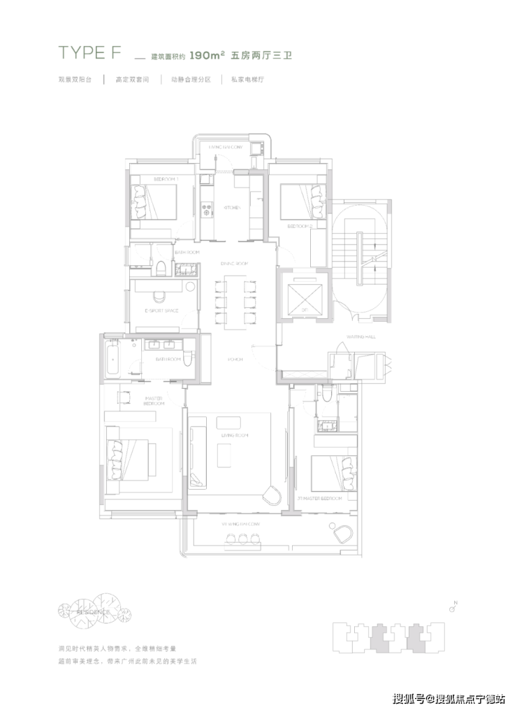 【190㎡户型】观景双阳台-高定双套间-私家电梯厅-双洄游动线