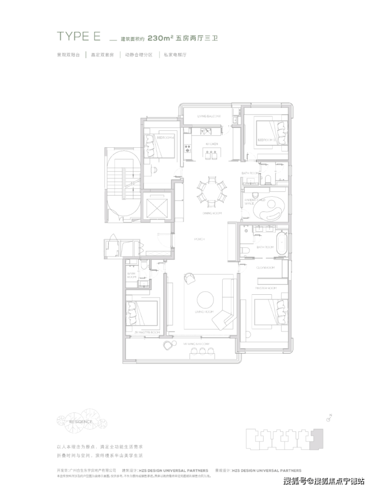 【230㎡户型】观景双阳台-高定双套间-私家电梯厅-双洄游动线