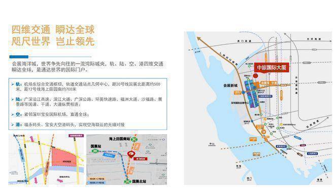 项目邻近12号线、20号及30号线(规划)交汇的国展北站,12号海上田园南站;