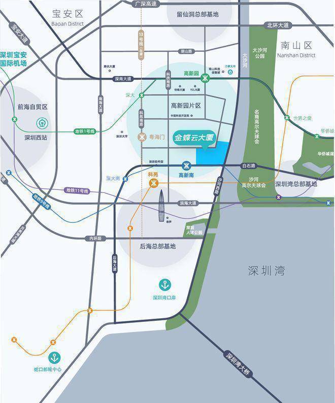 海、陆、空多维立体交通路网辐射粤港澳大湾区,举步即至地铁9号线高新南C口,12分钟直达深圳湾口岸,半小时内直抵宝安国际机场,以高效商务咫尺世界。